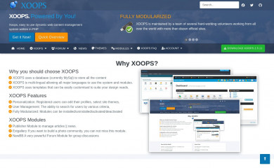XOOPS CMS is an extensible, OO (Object Oriented), easy to use dynamic web content management system (CMS) written in PHP. XOOPS is the ideal tool for developing small to large dynamic community websites, intra company portals, corporate portals, weblogs and much more.